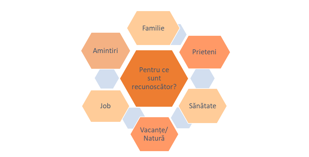 Important este să nu uiţi să fii recunoscător pentru tot ce se întâmplă în viaţa ta şi să îţi creezi un fel de rutina zilnică uşor de urmat care să ajungă la un moment dat să fie o practică automată, inconştientă aproape.